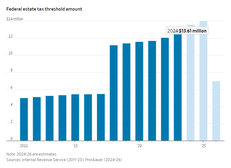 Is it possible the law could be changed before then? It’s possible, but you’d really be rolling the dice! I have my educated guesses, but I’m not going to place any bets on what Congress will do…there are just too many variables! I agree with what an attorney quoted in the article said: “You have to assume the exemption is going down (to $7M). If you’re banking on the exemption staying at $14 million in 2026, that is a gamble, and you’re potentially leaving a lot of tax savings on the table.”